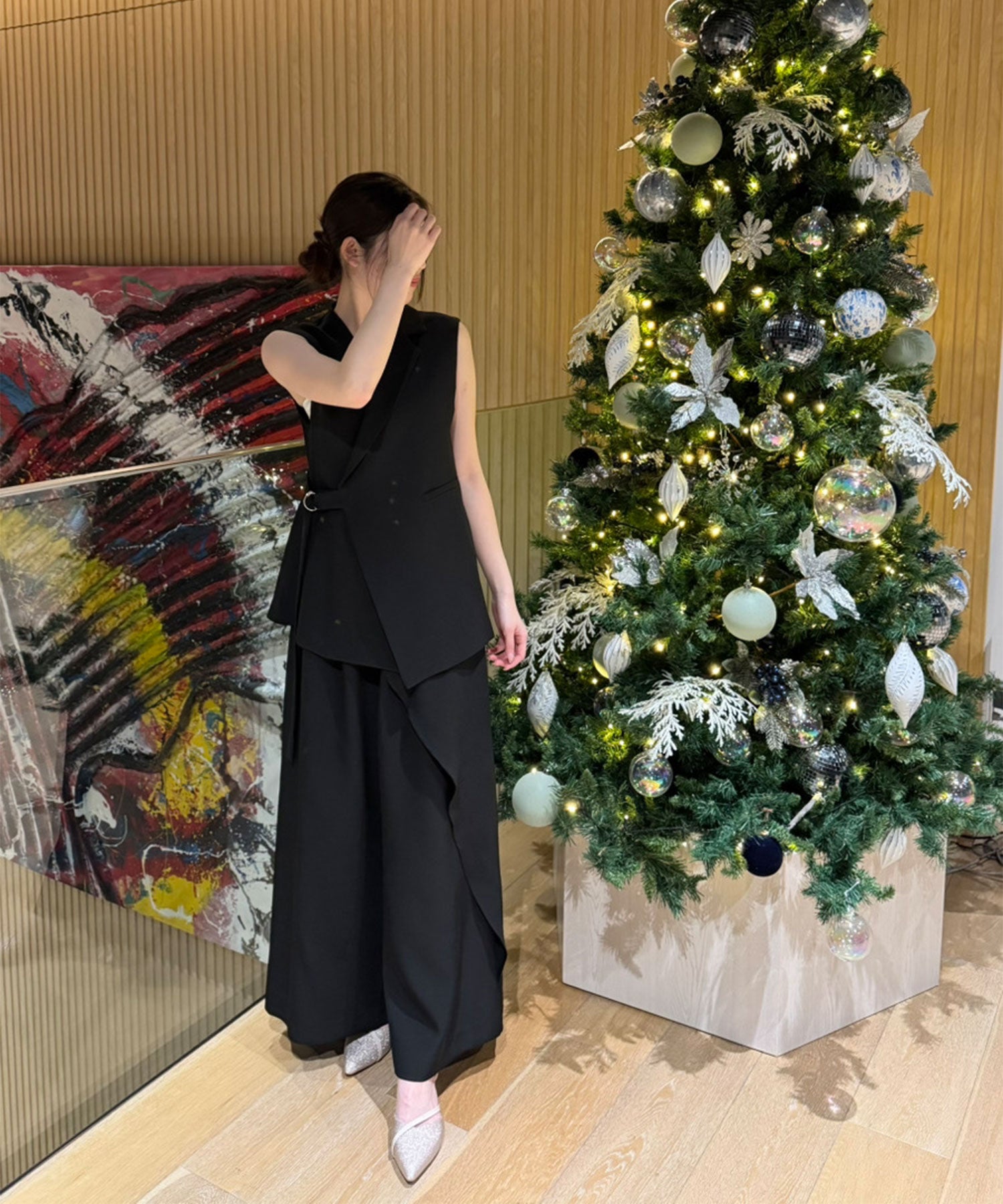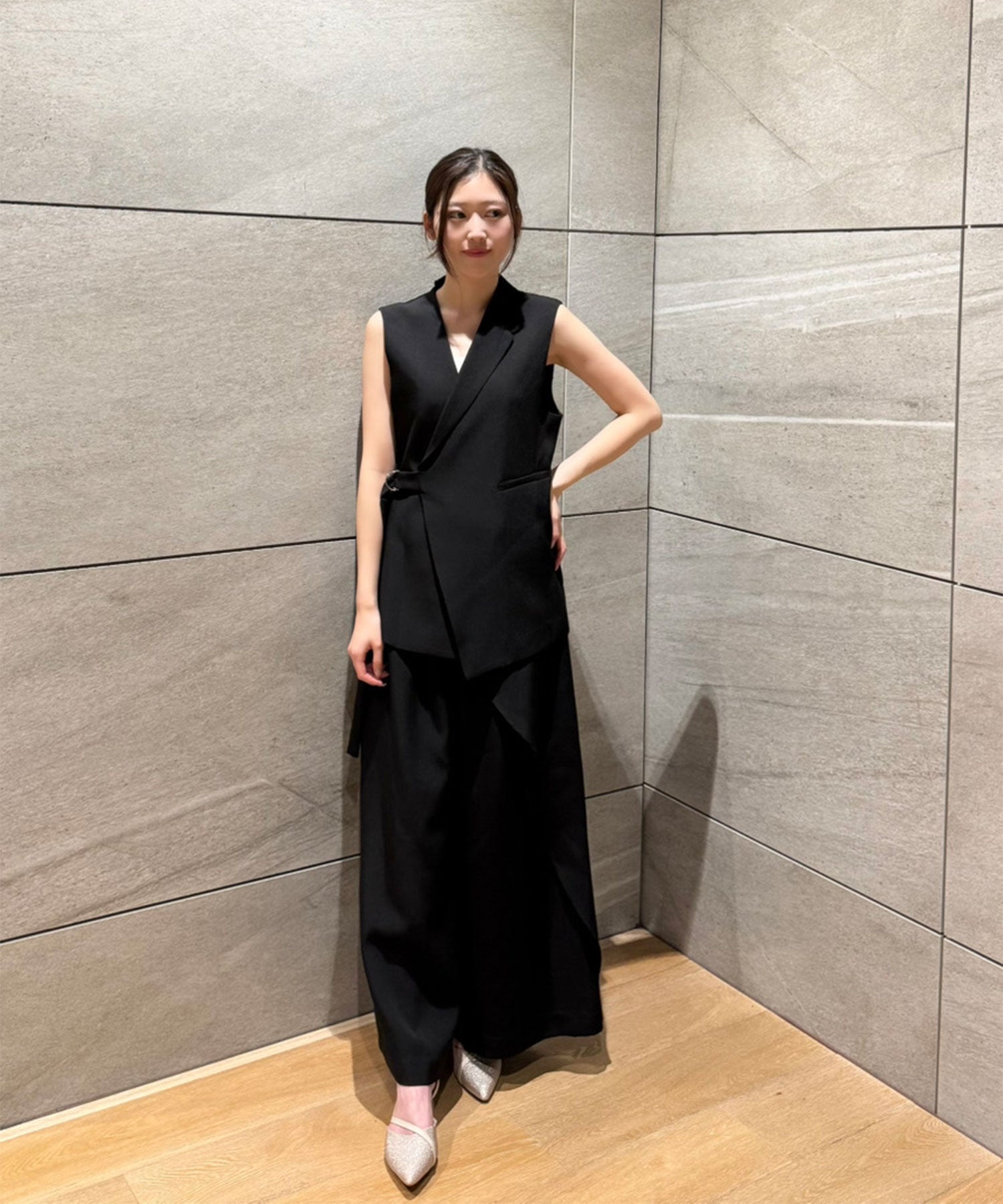 - モダンな印象と上品なシルエットが魅力の、ノースリーブジレセットアップ