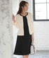 ハリ感の良いピケ調ツイード生地は、ジャケットのペプラムとワンピースのフレアシルエットに、