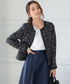 ツイード素材のノーカラージャケットとウエスト切替ワンピースのセットアップです。