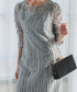 花柄&リーフ柄のストライプ刺繍が印象的なドレス