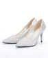 花柄にレザーカットされた生地に同色のビジューをちりばめて華やかさをプラスしました。