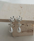 ビジューとパールをフラワーモチーフに仕上げたスウィングイヤリング。