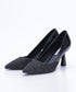 きらきら輝くグリッター(ラメ)生地を全体的にほどこした華やかなパンプス。