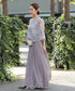 上品な刺繍レースにフリルをプラスして華やかな印象のトップスと両サイドにプリーツをほどこしたシフォンワイドパンツでいいとこどりの贅沢な印象のセットアップです。