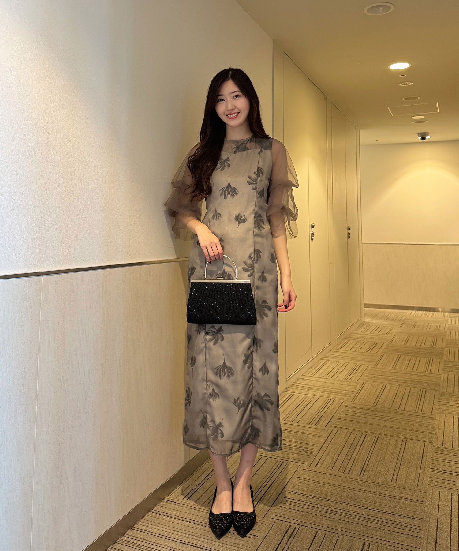 軽やかな透け感と繊細なフローラルモチーフが魅力の「シアーチュールフラワードレス」。