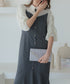 シャツ風な襟元と、胸元で切り替えられたデザインが特徴的。