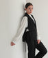 サイドのベルトデザインがポイントのジレセットアップ。