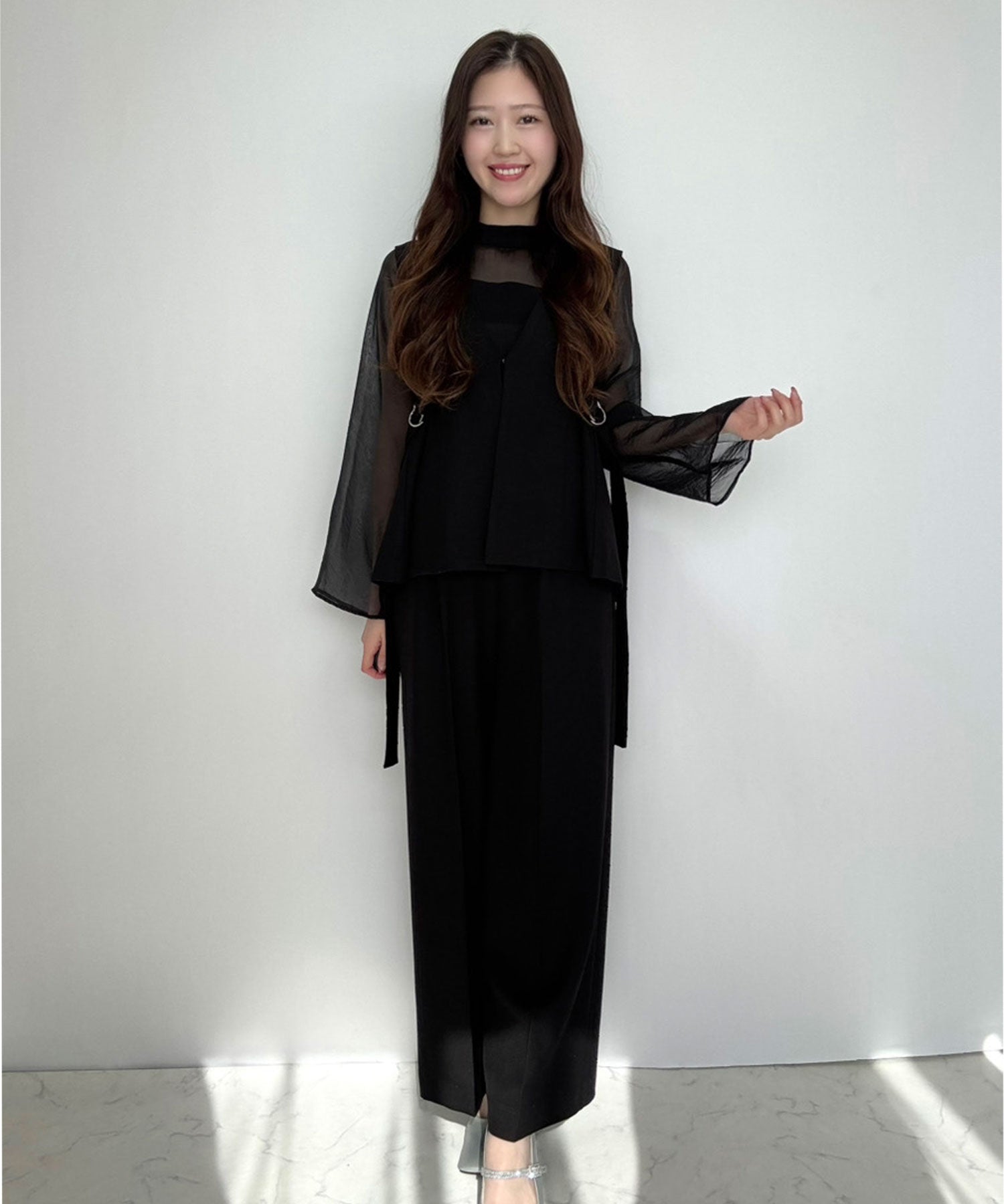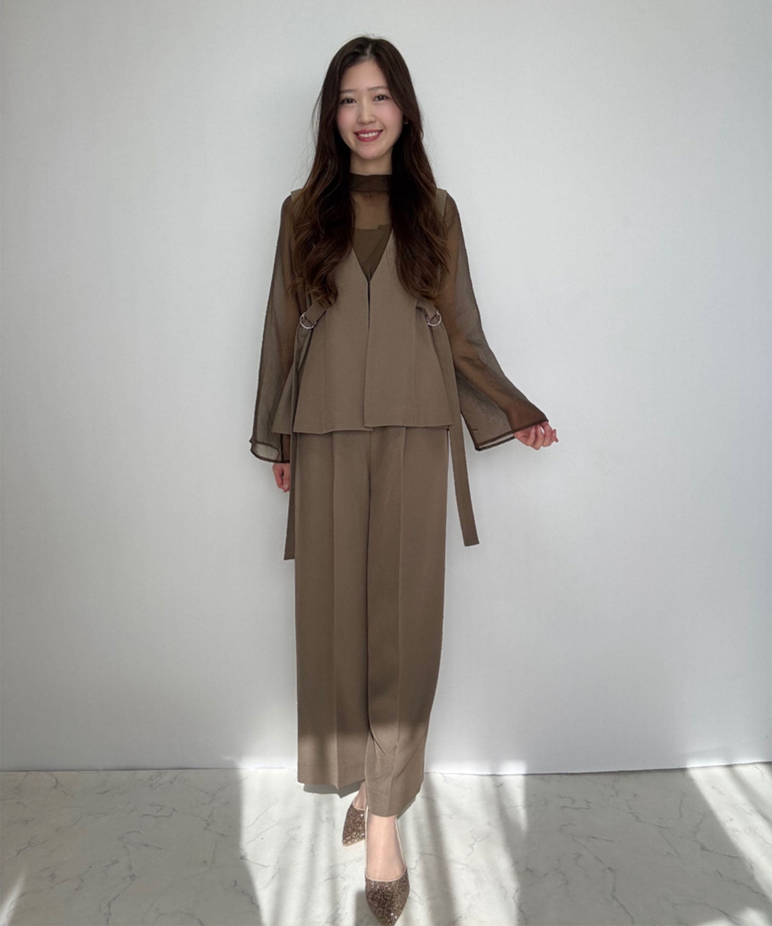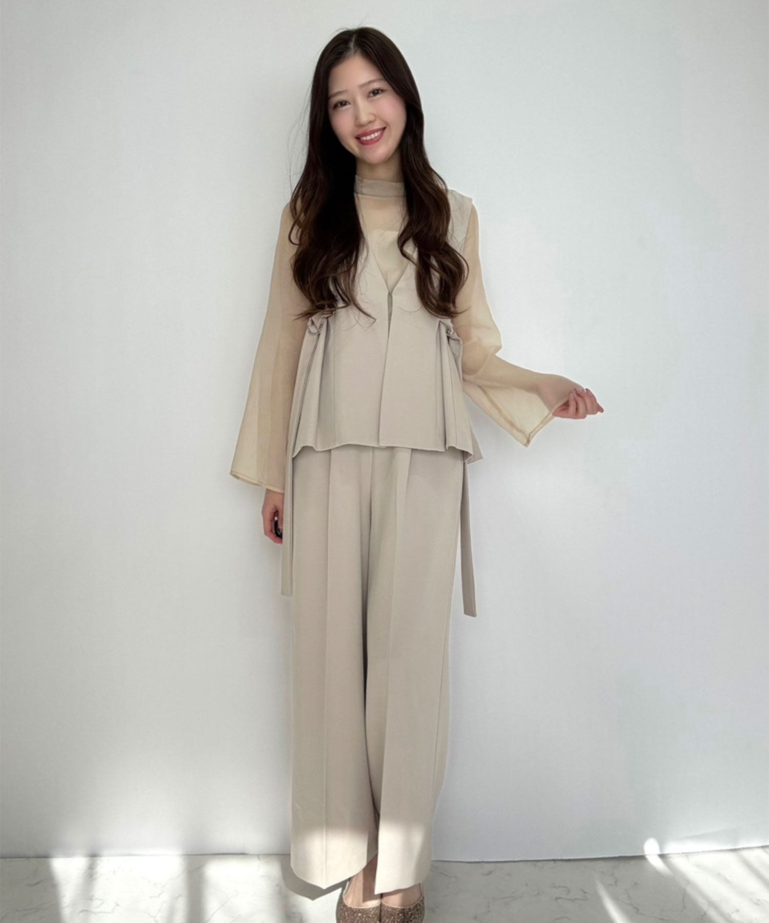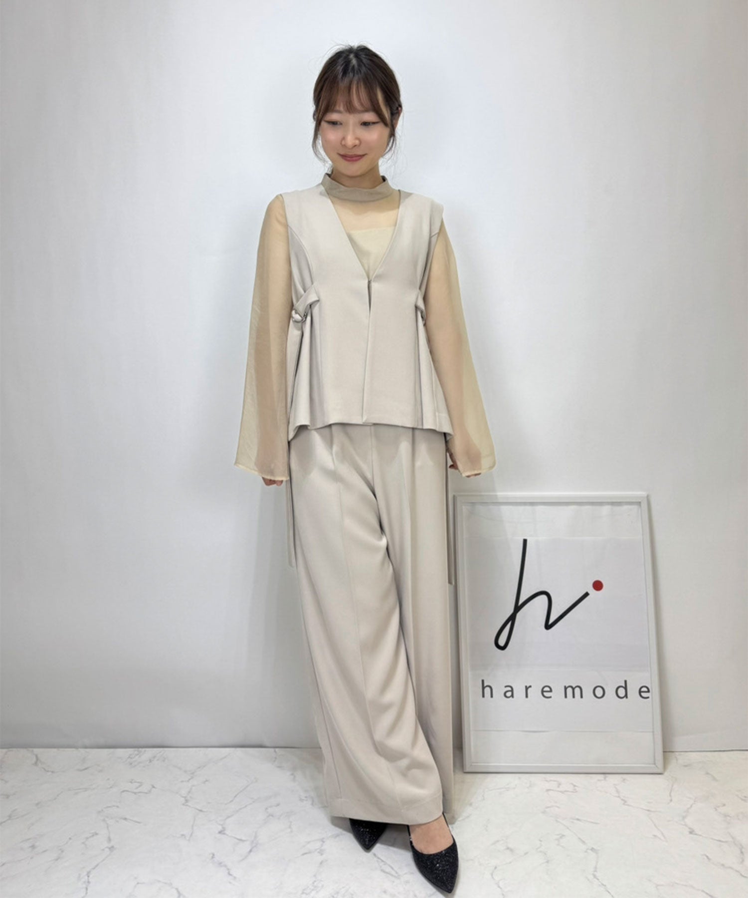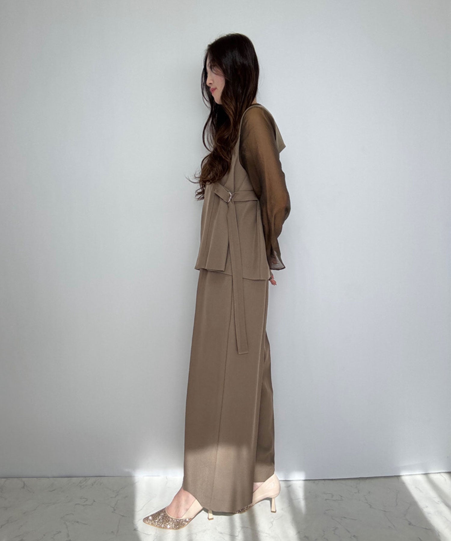 商品名:オールインワン パンツ セットアップ ジレ レイヤード シアースリーブ サイドベルト ウエストマーク きれいめ 体型カバー セレモニー フォーマル 入学式 卒業式 結婚式 二次会対応 ドレス スーツ
